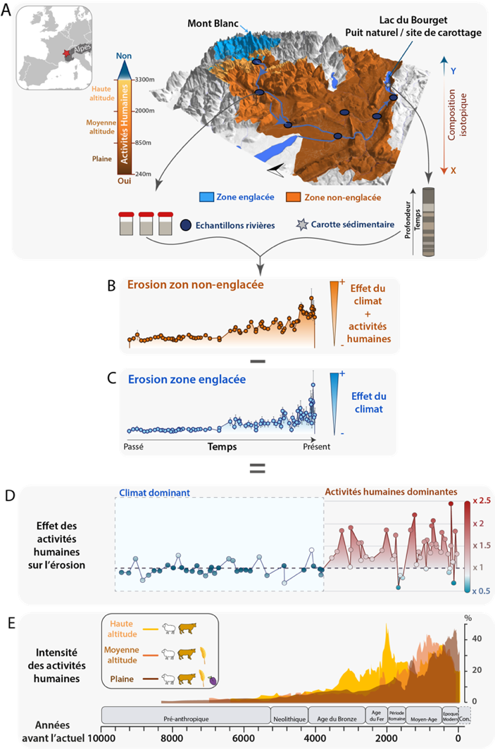 Rapuc, W., Giguet-Covex, C., Bouchez, J., Sabatier, P., Gaillardet, J., Jacq, K., Genuite, K., Poulenard, J., Messager, E., Arnaud, F., 2024. Human-triggered magnification of erosion rates in European Alps since the Bronze Age. Nature communications, publié le 10 février 2023. https://doi.org/10.1038/s41467-024-45123-3