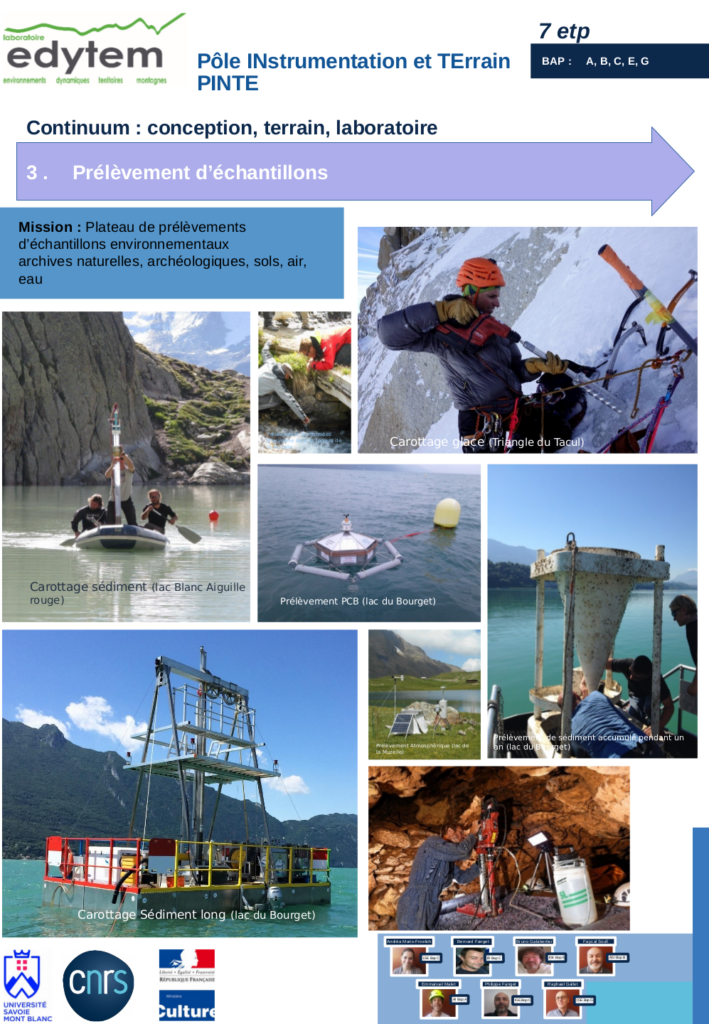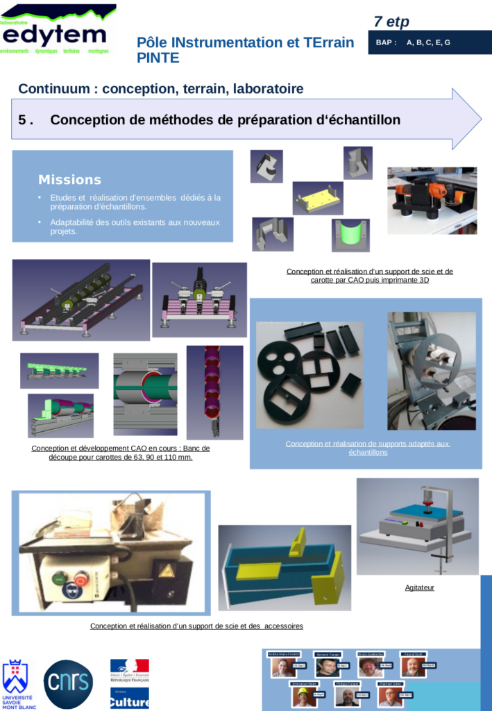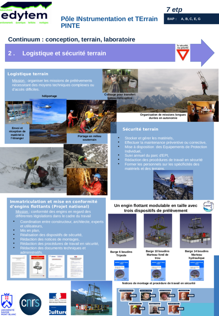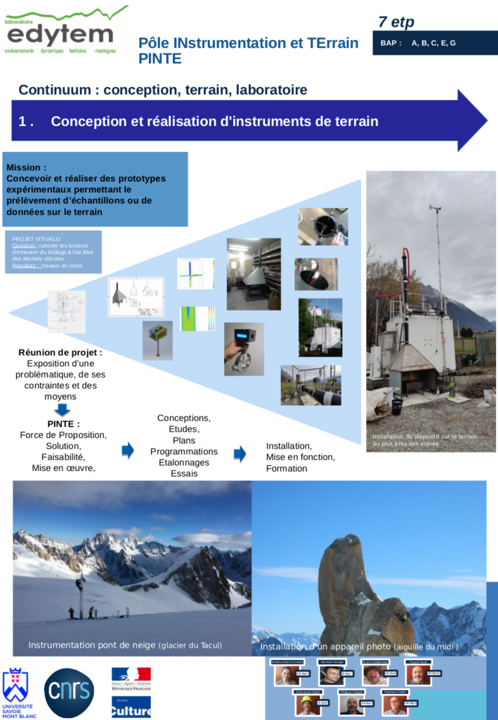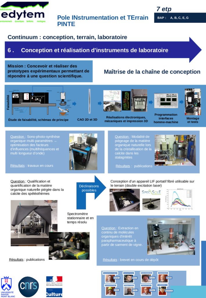 Les activités du pôle se déclinent dans un continuum qui va de la conception au laboratoire en passant par le terrain. Bien sûr, ces activités sont étroitement liées aux activités des autres pôles du laboratoire.