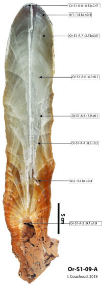 - Drysdale, R.N., Zanchetta, G., Baneschi, I., Guidi, M., Isola, I., Couchoud, I., Piccini, L., Greig, A., Wong, H., Woodhead, J., Regattieri, E., Corrick, E.C., Paul, B., Spötl, C., Denson, E., Gordon, J., Jaillet, S., Dux, F., Hellstrom, J.C. (2019). Partitioning of Mg, Sr, Ba and U into a subaqueous speleothem. Geochimica et Cosmochimica Acta, 264, 67-91.